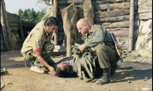 This is the gut-wrenching scenario in Danis Tanovic’s Oscar winning No Man’s Land (Best Foreign Language Film, 2002), touted as an anti-war film. I call it an anti-UN film. It demonstrates the uselessness of the UN as a global peacekeeping ‘police’ force. It is worse than useless, really, because it is expected to solve such issues, prevent them even. But doesn’t. Can’t. Won’t.